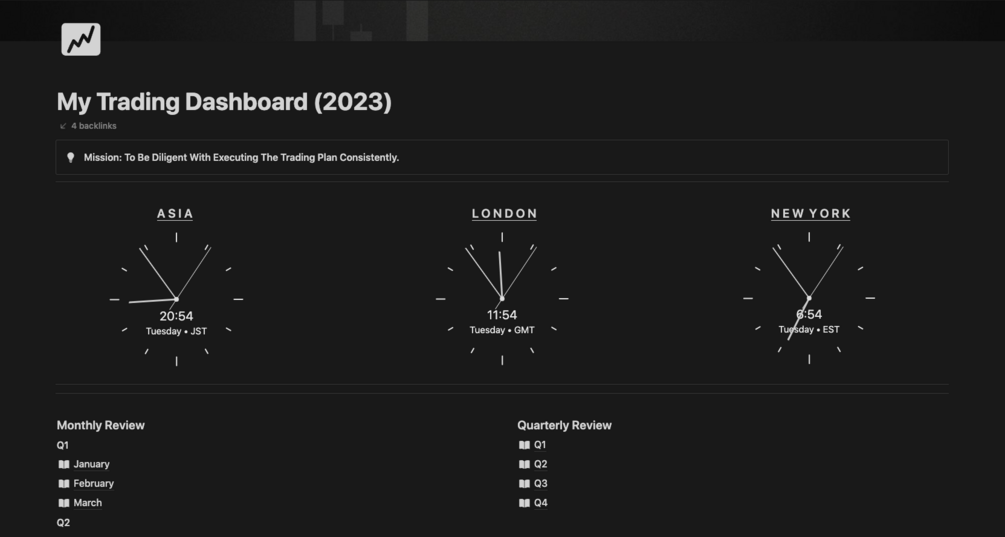 Michael Bamber's Notion Dashboard for Journaling Trades